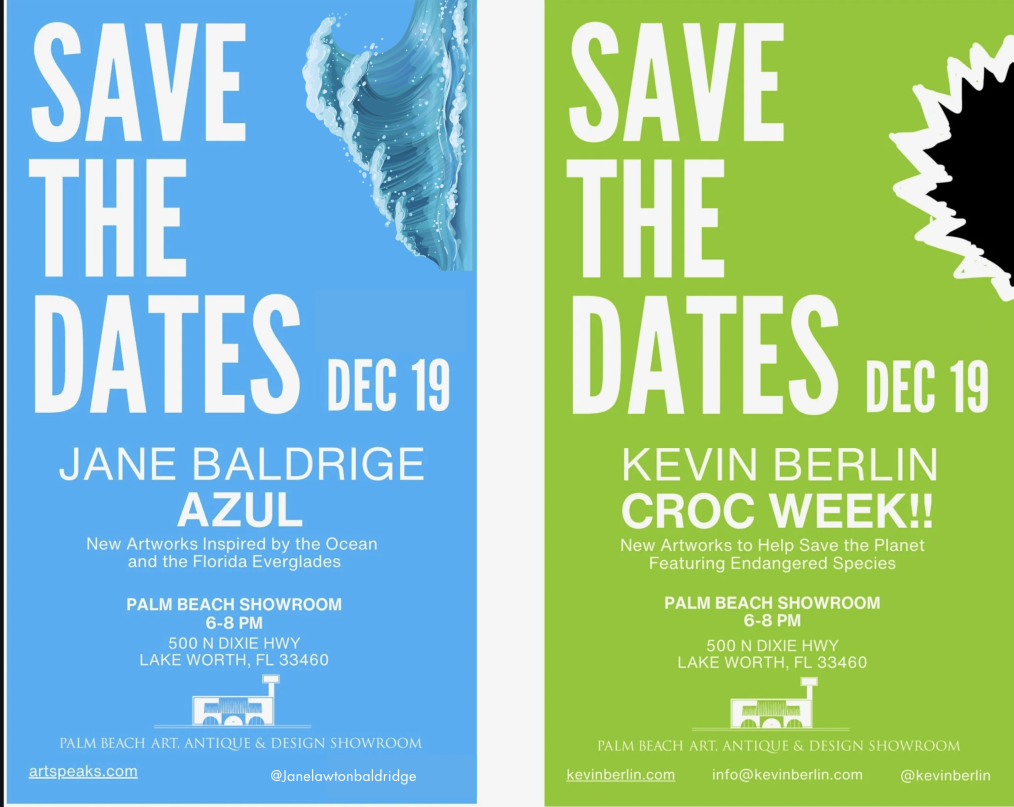 The Palm Beach Art and Design Showroom is thrilled to present a night highlighting internationally acclaimed artists Jane Lawton Baldridge and Kevin Berlin, each offering a profound exploration of nature and its fragile beauty. Join us Thursday, December 19th, 2024 from 6pm to 8pm as two artists showcase two extraordinary shows and give us insights at the artist lecture starting at 7pm.