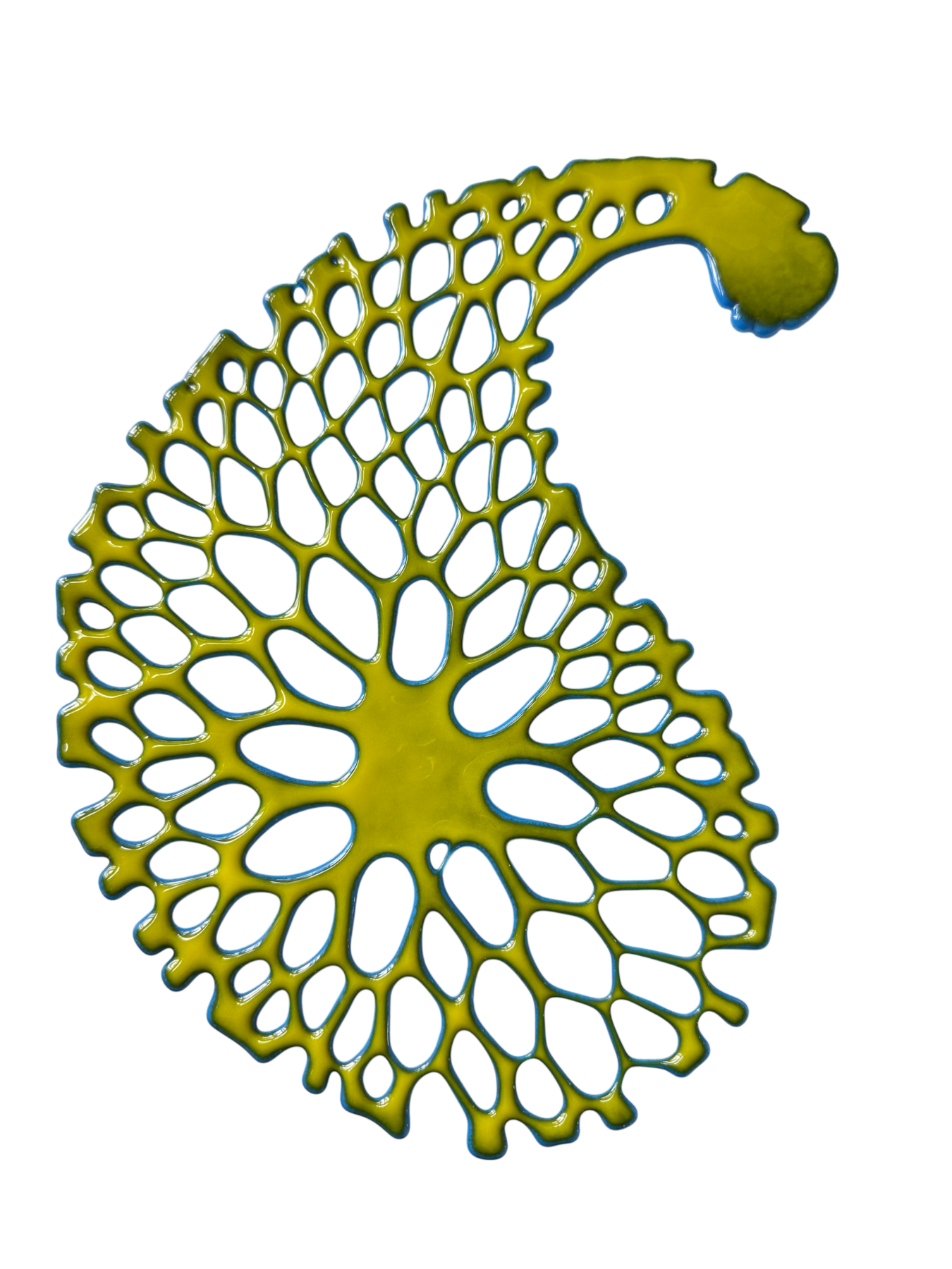 These dimensional fused glass pieces capture the organic beauty of coral formations inspired by Florida’s coastal waters. Each circular sculpture features radiating patterns of flowing voids and solid spaces, creating a delicate interplay of positive and negative space. The carefully orchestrated negative areas—some elongated, some rounded—evoke the natural growth patterns found in corals. Subtle color gradations and surface textures emerge through the 3 separate kiln-forming processes, giving each piece its own unique depth and visual interest.