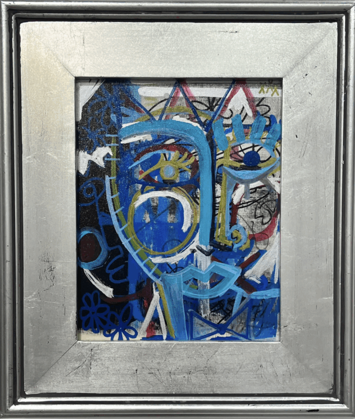 Acrylic, Marker and Pastel Silver Foil Frame