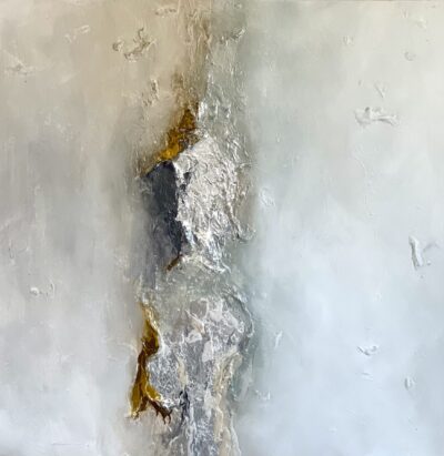 In this work, I explore how time, erosion, and memory carve their way through matter, leaving behind traces that feel both broken and unexpectedly whole. The painting is not a literal view of a place, but the inner landscape that remains after something has shifted, cracked, or been worn away.