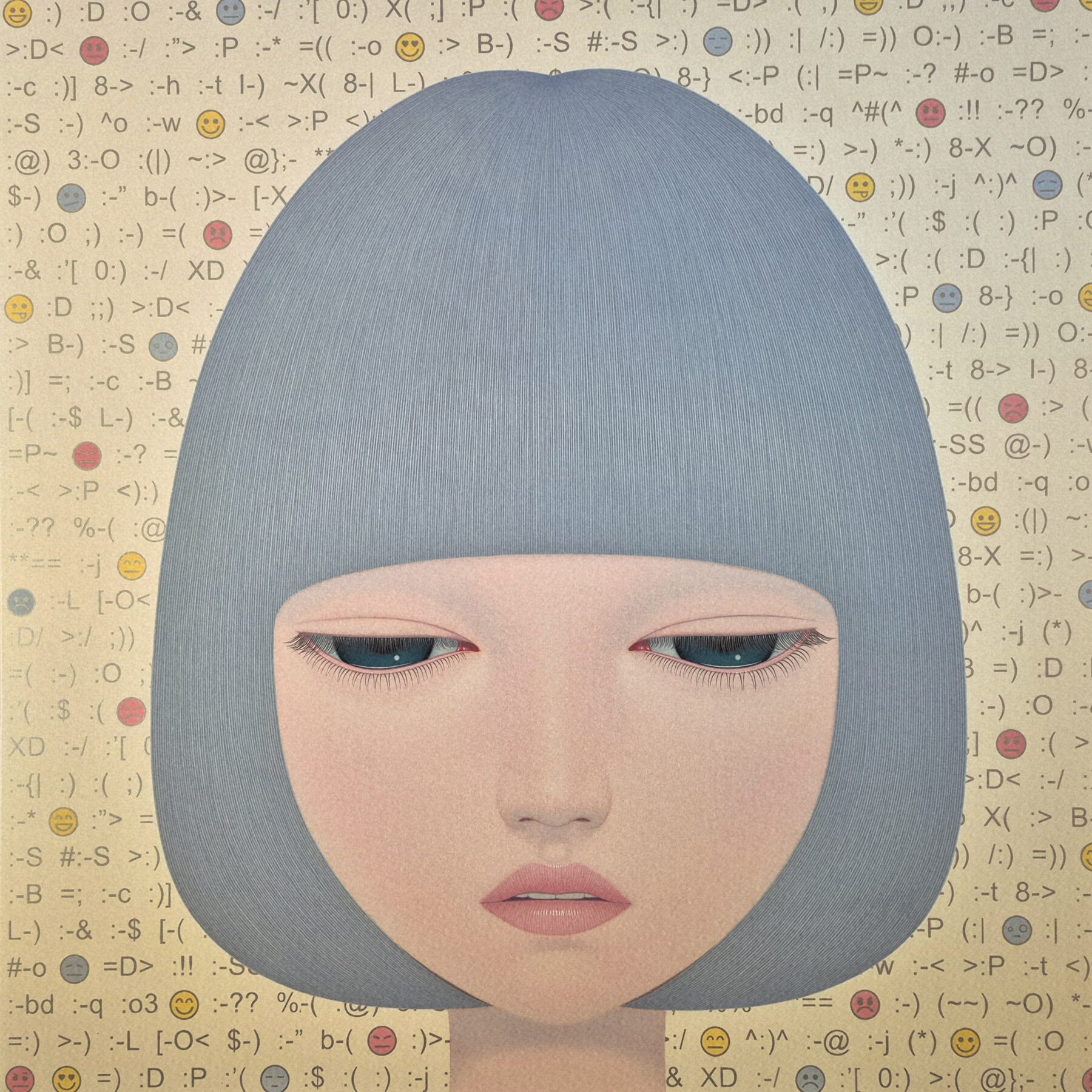 My work is the portrait related to contemporary people but there is no specific model. I choose something from them and shape it according to my taste, so why I entitled my recent work “Plastic” connected with the idea of plasticity. The word “Plastic” is a very attractive word to me. It can be everything and is widely used in contemporary culture. With this idea, I also take a close look at everyday objects, especially patterns and colors in the media, and then I reflect them on canvas with my language.