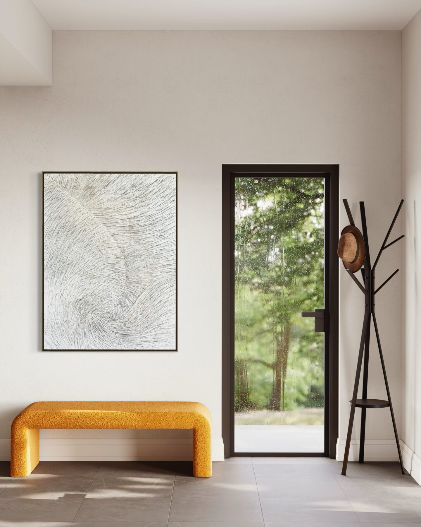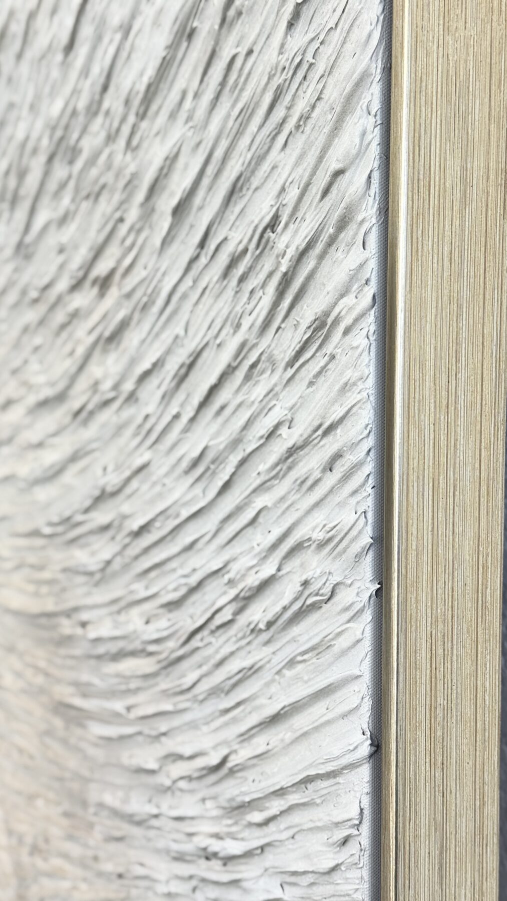 This work explores the paradox of feeling deeply while appearing serene. The flowing grooves and layered strokes create a subtle sense of rotation and pull, as if time itself were stretching and circling back on itself. Viewers are encouraged to tune into this tension between repose and movement, allowing their own breathing and heartbeat to fall into rhythm with the painting’s gentle, continuous flow.